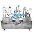 乳液灌裝旋蓋聯(lián)動一體機(jī)自動灌裝,自動落外蓋,自動旋蓋、不合格品自動剔除..